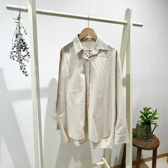 綿100%でさらりと着こなせるシンプルで深いスリット入りの ロングシャツです! 柔らかな素材が肌触り良く、ベージュストライプが柔らかい印象を与えます。 深いスリットの裾により動きやすさがプラスされて、ゆったりとリラックスしたシルエットは、ワイドパンツやデニムとも相性抜群です。 1枚でサラッと着られて、ボタンを外して着ればオーバーシャツとしても活用でき、後ろはお尻がすっぽり隠れる丈なので、ヒップラインが気になる方には安心して着こなせます。 お手持ちのアクセサリーやシューズと組み合わせて、より一層あなたらしいスタイルを楽しまれてはいかがでしょうか? ▶️写真のGパンはこちら https://hanatoyou.base.shop/items/97709786 ▶️写真のトートバッグはこちら https://hanatoyou.base.shop/items/88706498 <ブランド> HARMONY <製造国> 韓国 <素材> 綿100% <生地情報> 厚さ:普通、透け感:無し、伸縮性:なし <サイズ> ワンサイズ 着丈72cm 肩54cm 胸囲58cm 袖49.5cm ※平置きしての採寸です。 <カラー展開> ベージュストライプ <洗濯> ・漂白は色落ちの原因となりますので、おやめ下さい。 ・タンブラー乾燥は縮みの原因になりますのでお避けください。 ・家庭で洗濯する際は洗濯ネット使用し、単独洗濯して下さい。 ※写真の色の見え方など、撮影の際の明るさや環境、またお使いのデバイスなどにより、実物と写真のお色の見え方に違いが生じる場合がございますのでご了承下さい。 ※サイズ交換、返品不可になります。ご注文の際はご注意ください。 ※検品していますが、海外製品のため、若干の汚れ・傷等まれにございます。返品対象となりかねますのでご了承くださいませ。 ※お使いいただく中で、糸のほつれなど出る場合もございますので、ご理解の上、ご購入下さい。 詳しくは【ご購入前にお読み下さい】のページをご覧下さい。 何か質問、不明点などありましたら、お気軽にご連絡下さい。 #韓国ファッション #ストライプシャツ #大人カジュアル #リラックススタイル #ロングシャツ #コットンシャツ #hana_to_you_plus