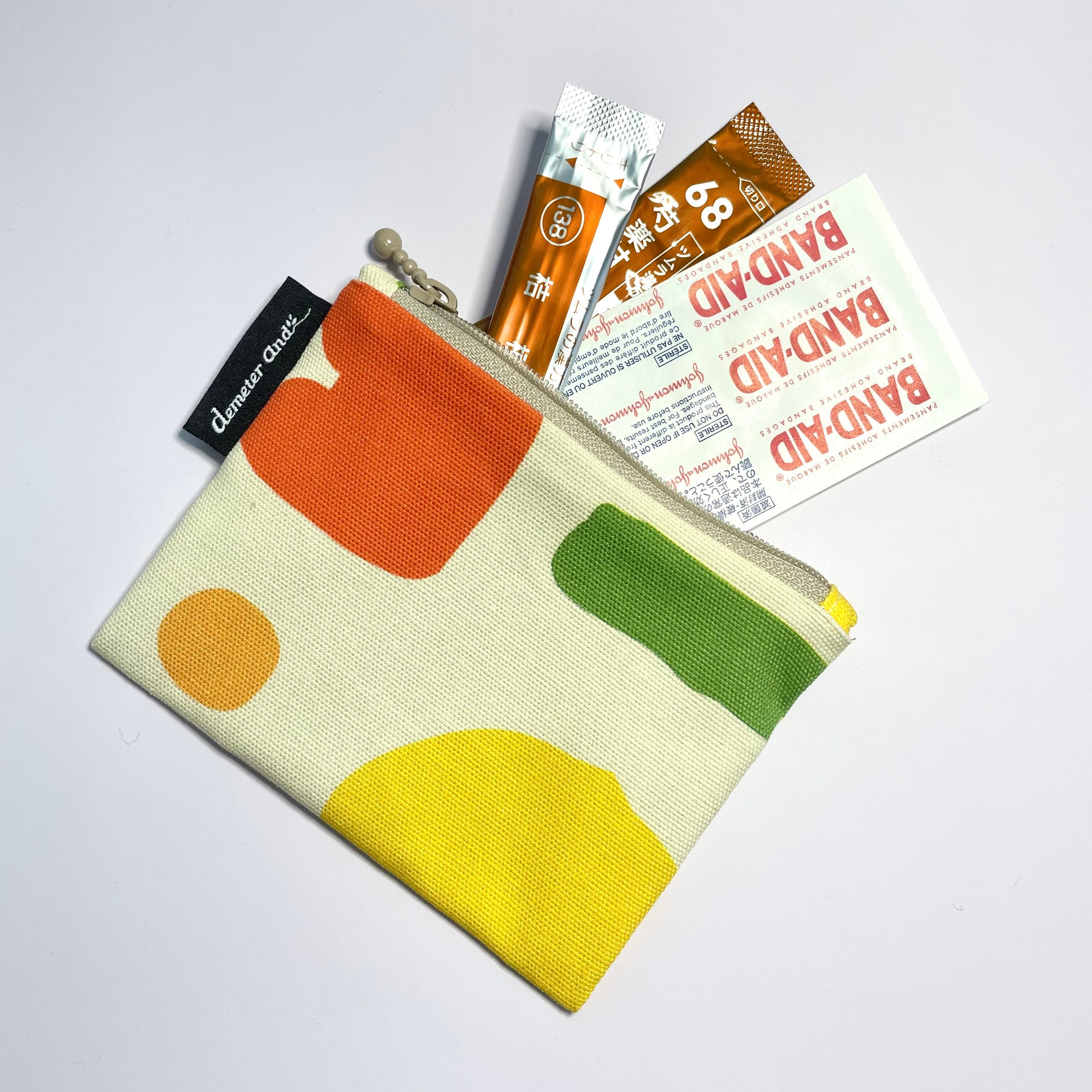 お札やカード類を入れたり、リップや鍵、イヤホンやアクセサリー、飴やガム、旅行の際に必要な薬などを入れて、お出かけに持っていきやすいサイズです。